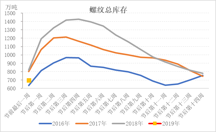 庫(kù)存低于去年同期,市場(chǎng)有望出現(xiàn)開門紅行情。根據(jù)Mysteel庫(kù)存統(tǒng)計(jì)數(shù)據(jù),2019年春節(jié)前最后一周五大品種庫(kù)存雖高于2016年,但低于2017、2018年,尤其是螺紋鋼,總庫(kù)存低于2018年同期122萬噸。在產(chǎn)量高于去年同期的情況下,需求是好于去年同期的。市場(chǎng)對(duì)節(jié)后需求依舊抱有較大期待。