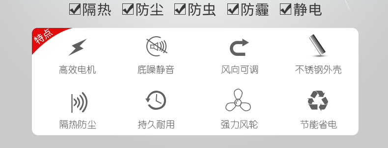 3、獨特導風板設計,風向可隨意調節,并適用各種使用環境;